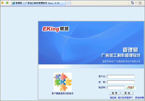係統就會打開IE瀏覽器,顯示登錄界麵,當下圖出現的時候,您就可以使用國內領先的廣告行業管理軟件-管理易了: