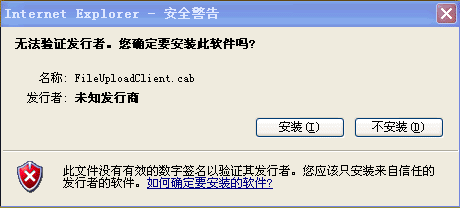 完成對可信站點的設置後,再次打開上傳窗口,可以看到係統提示安裝ActiveX控件,如下圖: