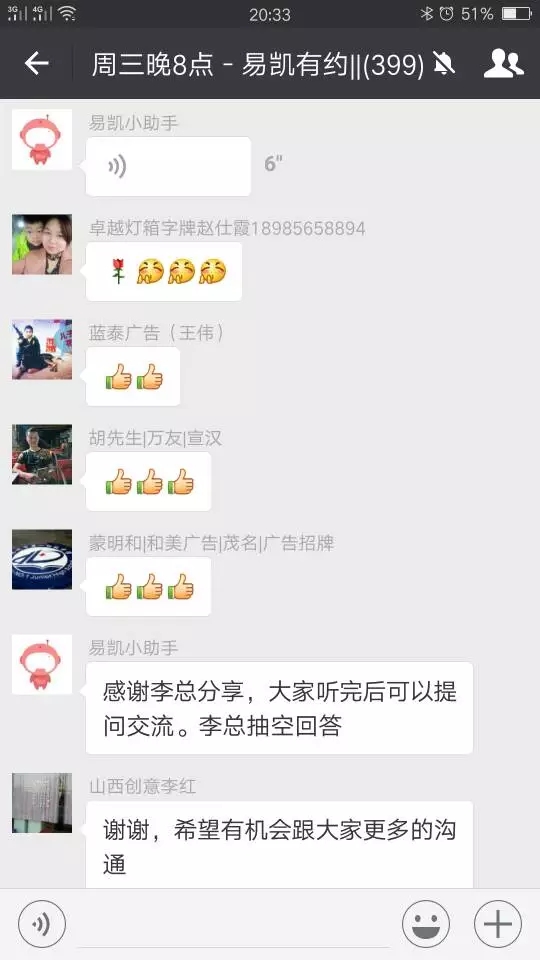 今(jin)天(tian)準(zhun)備(bei)的(de)比(bi)較(jiao)倉(cang)促(cu),所(suo)以(yi)今(jin)天(tian)就(jiu)跟(gen)大(da)家(jia)分(fen)享(xiang)到(dao)這(zhe)裏(li),因(yin)為(wei)這(zhe)兩(liang)天(tian)剛(gang)投(tou)了(le)一(yi)個(ge)標(biao),這(zhe)兩(liang)天(tian)因(yin)為(wei)人(ren)手(shou)也(ye)不(bu)夠(gou),比(bi)較(jiao)忙(mang),比(bi)較(jiao)亂(luan)一(yi)點(dian),所(suo)以(yi)分(fen)享(xiang)得(de)不(bu)是(shi)太(tai)多(duo)。今(jin)天(tian)就(jiu)跟(gen)大(da)家(jia)分(fen)享(xiang)到(dao)這(zhe)裏(li),謝(xie)謝(xie)大(da)家(jia)、謝謝易凱!祝各位老板生意越來越紅火,祝易凱明天更美好。