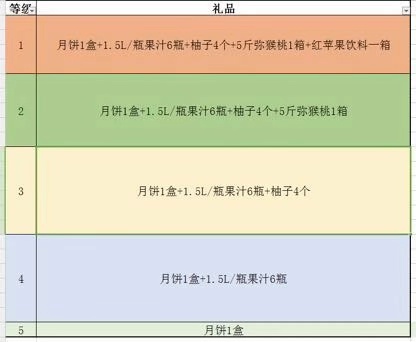 像這個表格,就是我們今年在中秋節的時候,我們是劃分了五個等級,給我們公司所有的員工做一個福利。