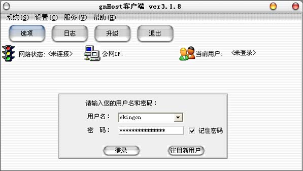 雙擊gnHost客戶端圖標,係統要求錄入剛才注冊的用戶名與密碼,如下圖: