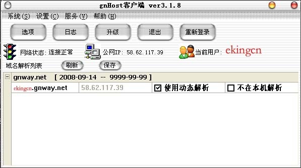 下載金萬維動態域名解析軟件gnHOST 新版本:http://www.gnway.com/service/serviceDownload.php?item=gnhost ,如下圖: