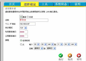 步驟3:設置虛擬服務器或者端口轉發,設置上傳文件的端口1500,除了端口為1500外,其他設置與步驟2演示是一樣的。