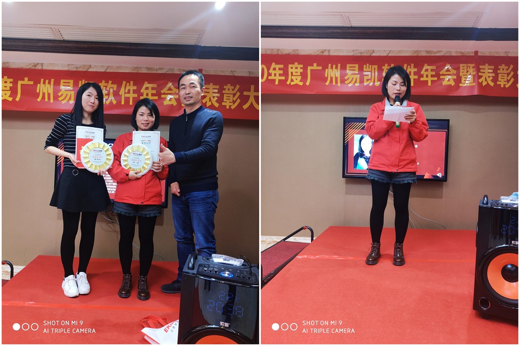 酒足飯飽之後,我們接著就來到了我們最激動人心的環節——2020年度易凱優秀同事的表彰!首先頒發的是我們後台部門優秀員工的獎,包括研發部、財務部、行政部、網絡運營部。