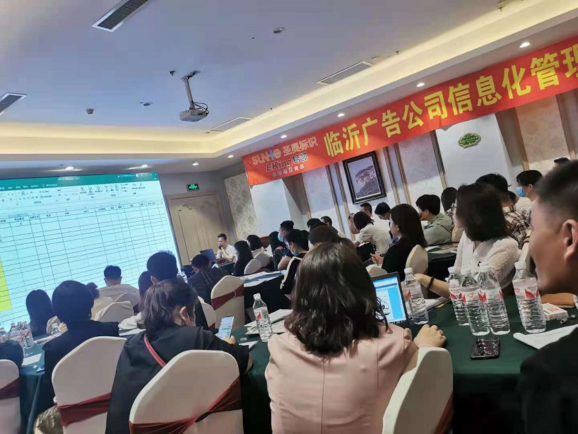 由山東聖昊標識主辦,廣州易凱軟件協辦的廣告公司信息化管理培訓會於5月22日在臨沂世尊伯爵酒店舉行並圓滿結束,為期一整天的培訓會共有50人報名參加。