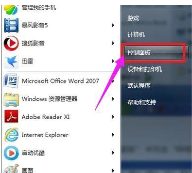 點擊開始菜單,選擇控件麵板
