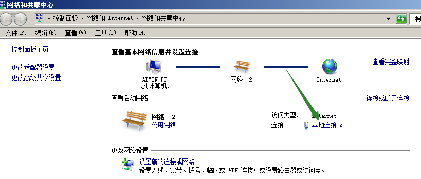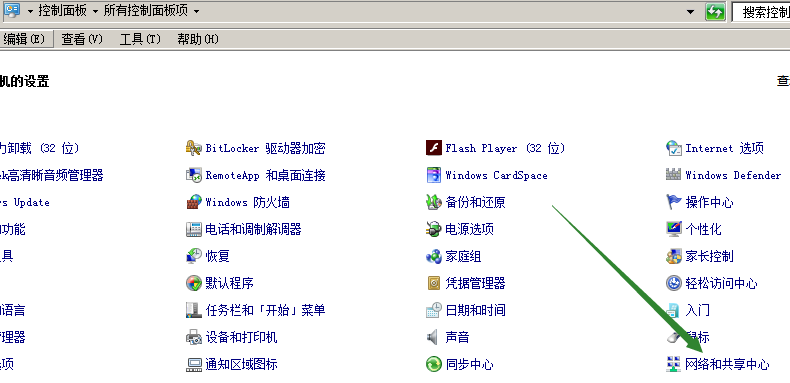 進入控製麵板,選擇網絡和共享中心