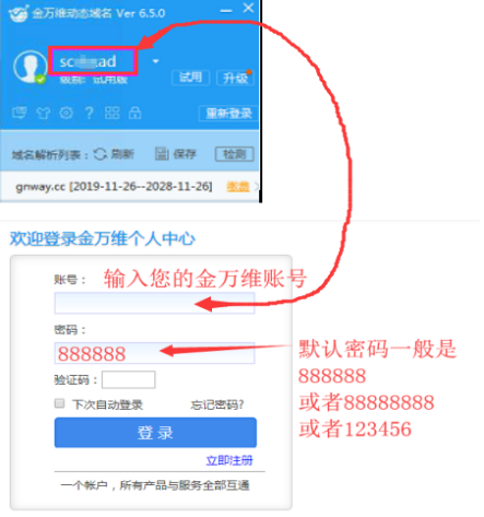 2、登陸您的金萬維賬號,賬號就是金萬維上的域名前綴。
