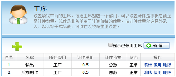 設置計件單價,如圖表示輸出0.5元/平,後期製作0.5元/平