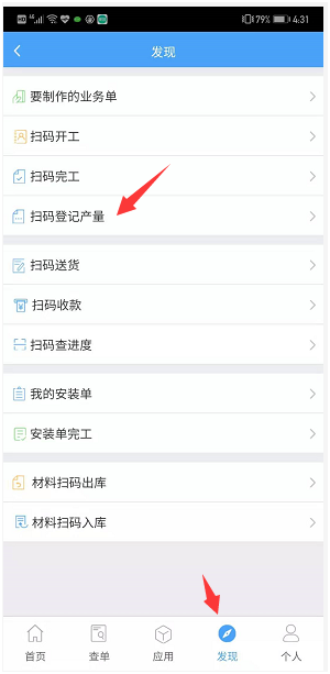 製作人員也可以自己在手機app進行產量登記,手機app進入發現--saomadengjichanliang,saomiaozhizuodandeerweimajinxingchanliangdengji,shoujichanliangdengjizhinengdengjizijizhizuodechanliang,dengjihouxitonghuitongbujisuanzhegezhizuorenyuandejijianchanzhi
